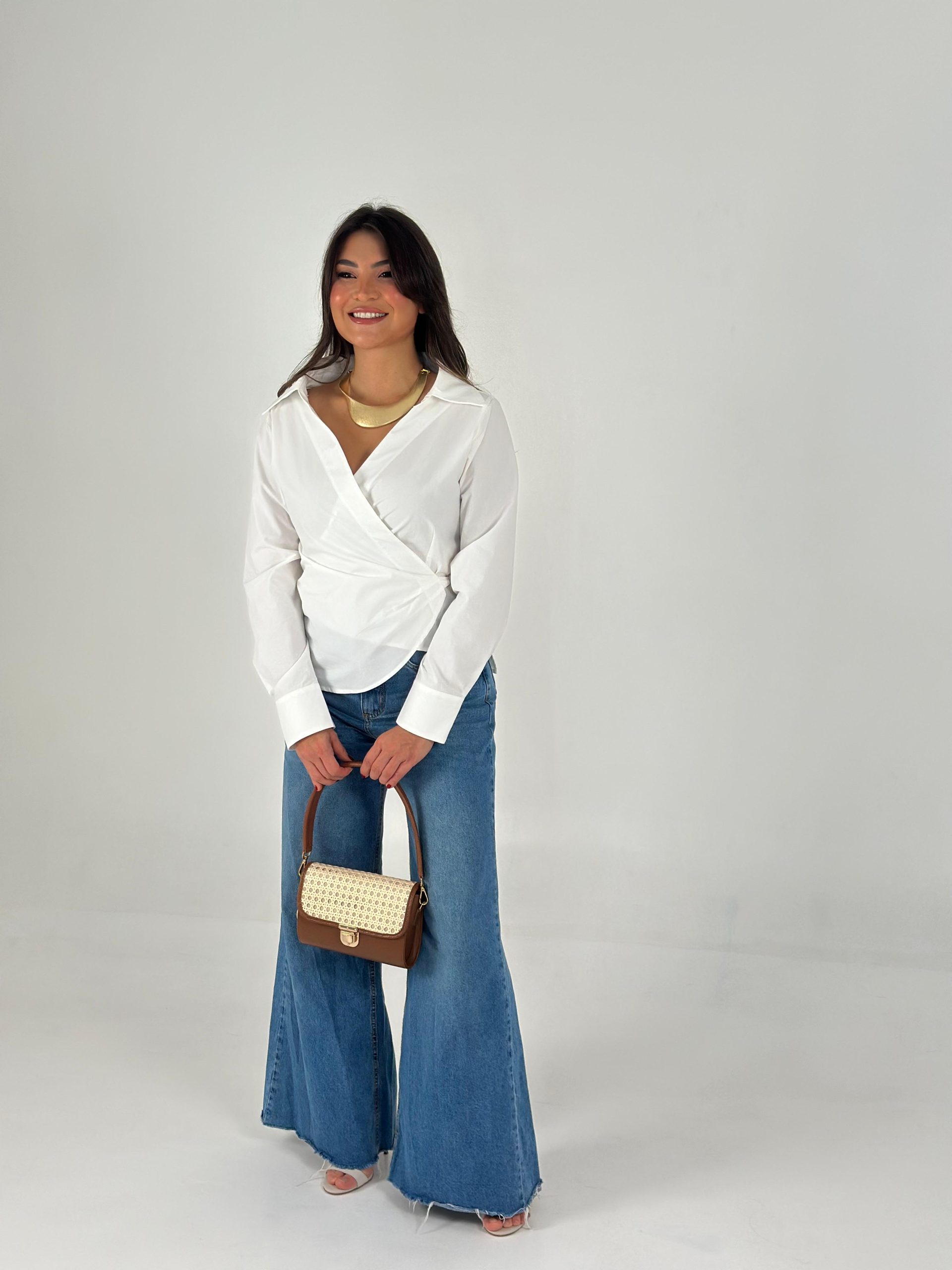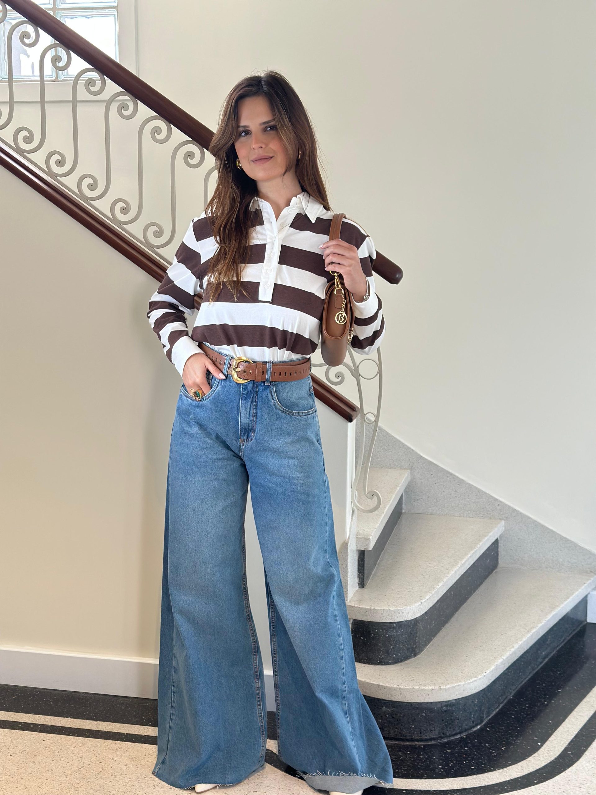Jeans Laure com cintura alta e modelagem ampla. Essa calça tem um caimento impecável e um corte diferenciado aliando muita elegância ao look.