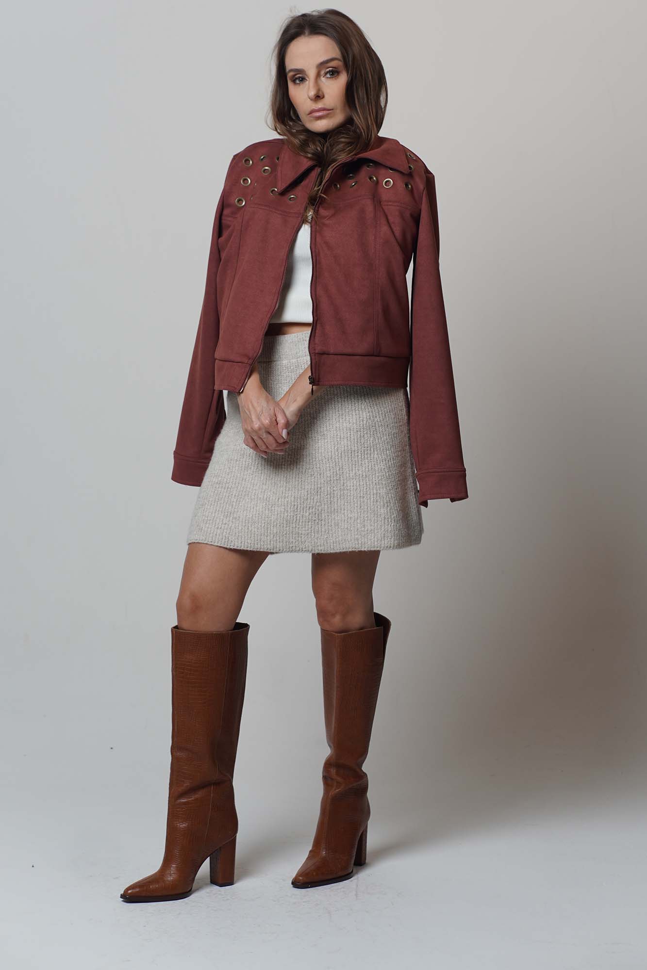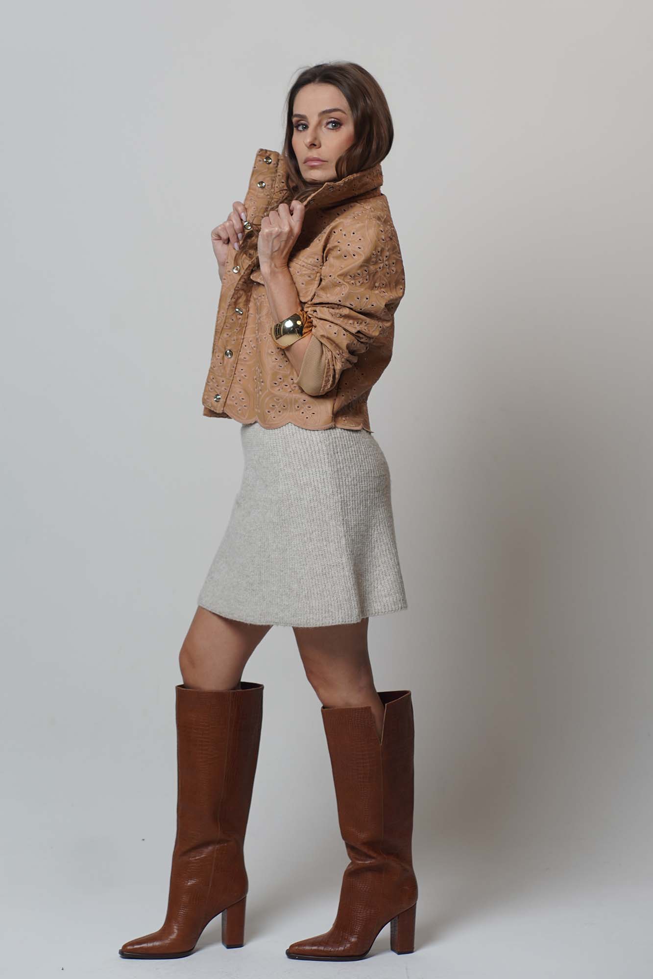 Saia mídi de tricô feita de fios de alta qualidade, peça que une conforto caimento e permite combinações versáteis – do look casual ao visual elegante com salto.